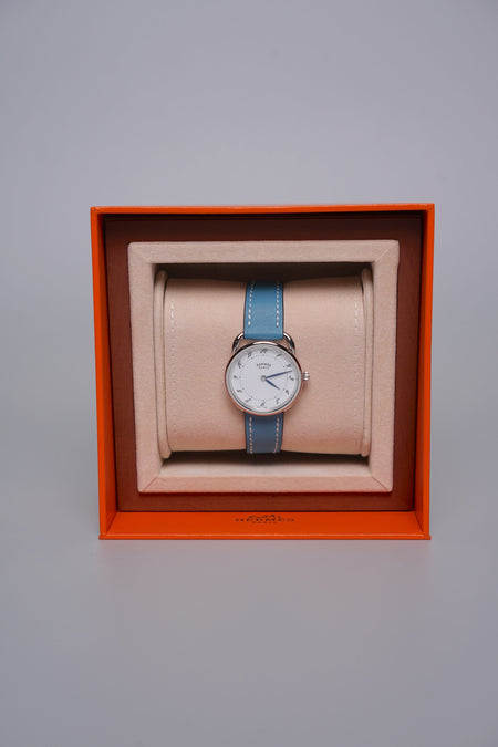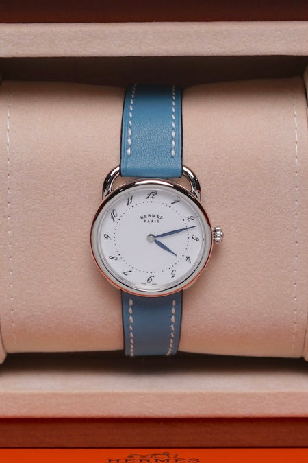 Quick Shop orangeporter Hermes Arceau Watch, Medium Model, 30mm in Bleu Jean Swift Calfskin Phw (Brand New) $3,150.00