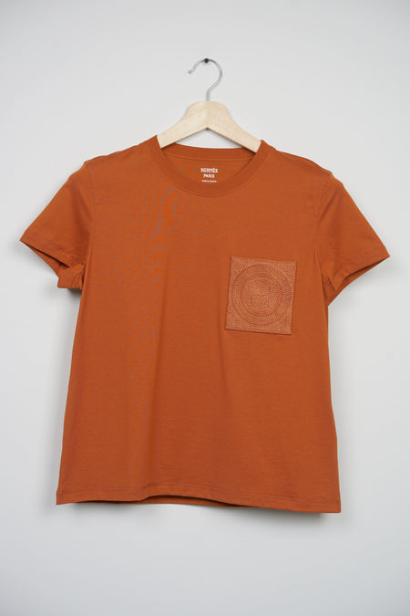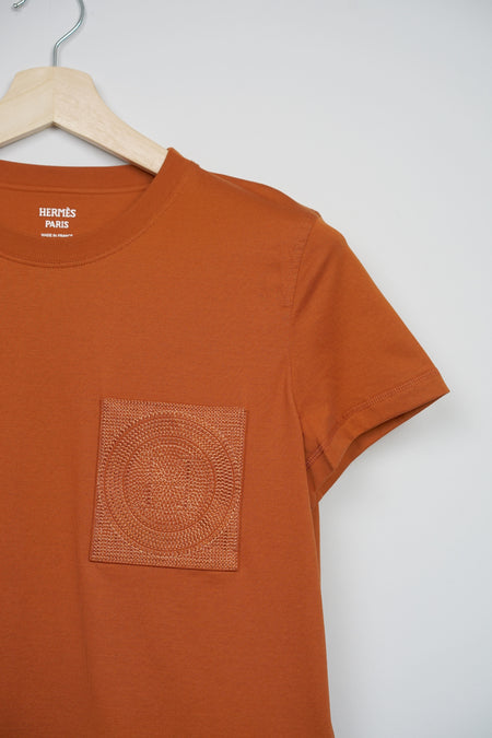 Quick Shop orangeporter Hermes Embroidered Pocket T-Shirt in Marron Alezan Size 40 (Brand New) $550.00