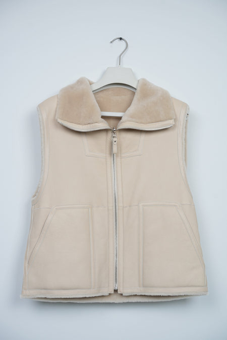 Quick Shop orangeporter Hermes Reversible Sleeveless Jacket in Beige Glaise Size 38 (Brand New) $5,900.00