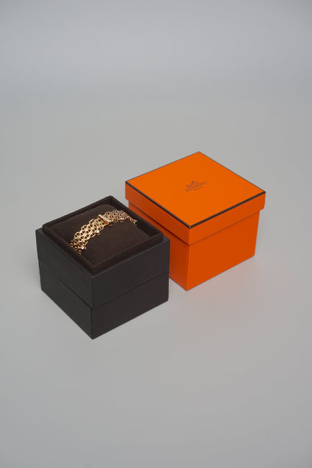 Quick Shop orangeporter Hermes Kelly Gourmette Bracelet with Diamonds, Very Small Model in Rose Gold Size XS (Brand New) $12,900.00