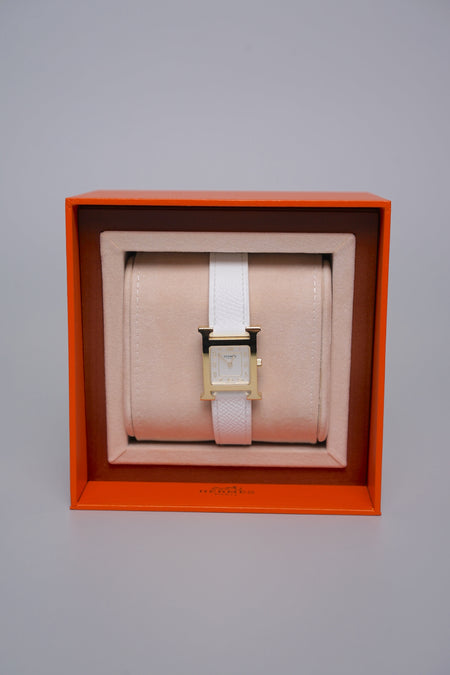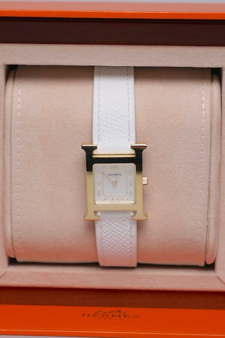 Quick Shop orangeporter Hermes Heure H Watch, Small Model, 25mm in White Epsom Ghw (Brand New) $3,100.00