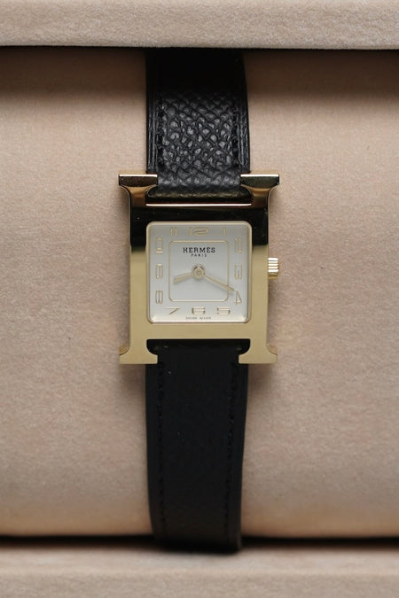 Quick Shop orangeporter Hermes Heure H Watch, Small Model, 25mm in Noir Epsom Ghw (Brand New) $2,980.00