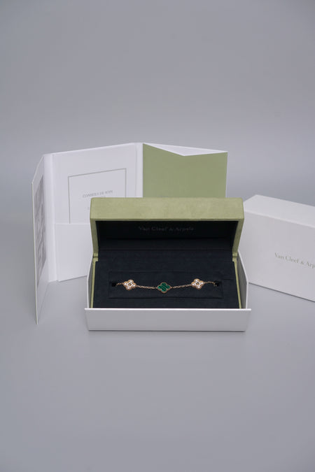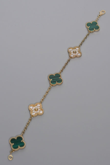 Quick Shop orangeporter VCA Vintage Alhambra 5 Motif Bracelet in Yellow Gold Diamonds, Malachite $21,500.00